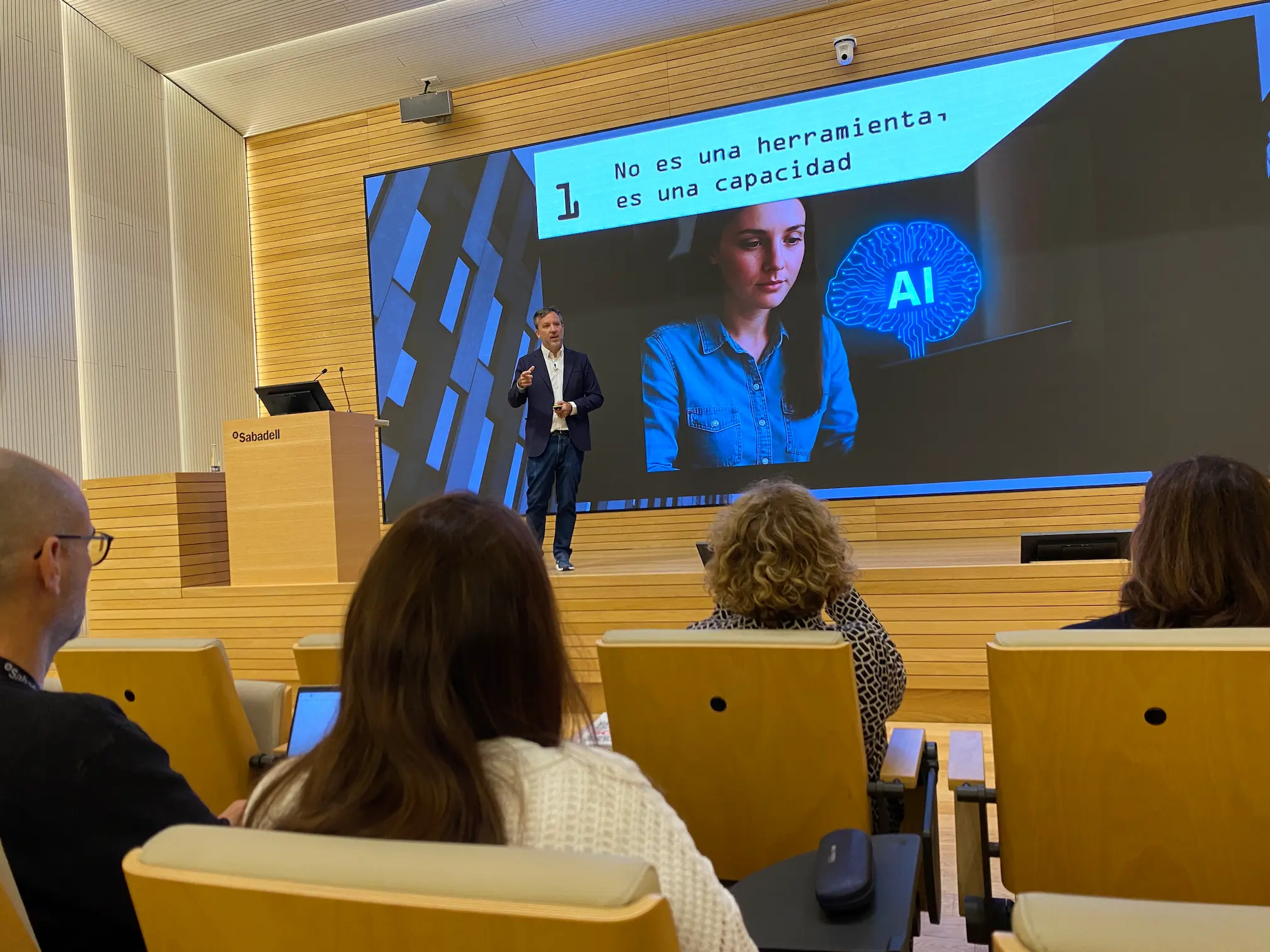 Mientras tú duermes, la inteligencia artificial (IA) sigue evolucionando y ampliando sus capacidades. ¿Renunciarías a potenciar las tuyas con ayuda de la IA solo por miedos o barreras mentales a utilizarla? Esta reflexión estuvo muy presente durante la intervención del experto en inteligencia artificial Fernando de la Rosa en el Ciclo DisruptIA de Sabadell Forum, una iniciativa organizada por el equipo de Inteligencia Artificial y Datos de Banco Sabadell.