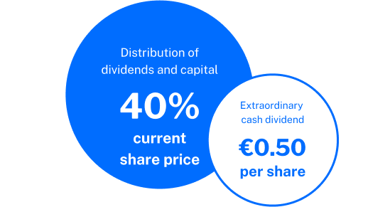 Between 2025 and 2027, Banco Sabadell expects to make dividend distributions and share buybacks for its shareholders of around 40% of its current share price, including an extraordinary cash dividend of 50 cents per share linked to the sale of TSB, which is expected to be paid during the first quarter of 2026.3