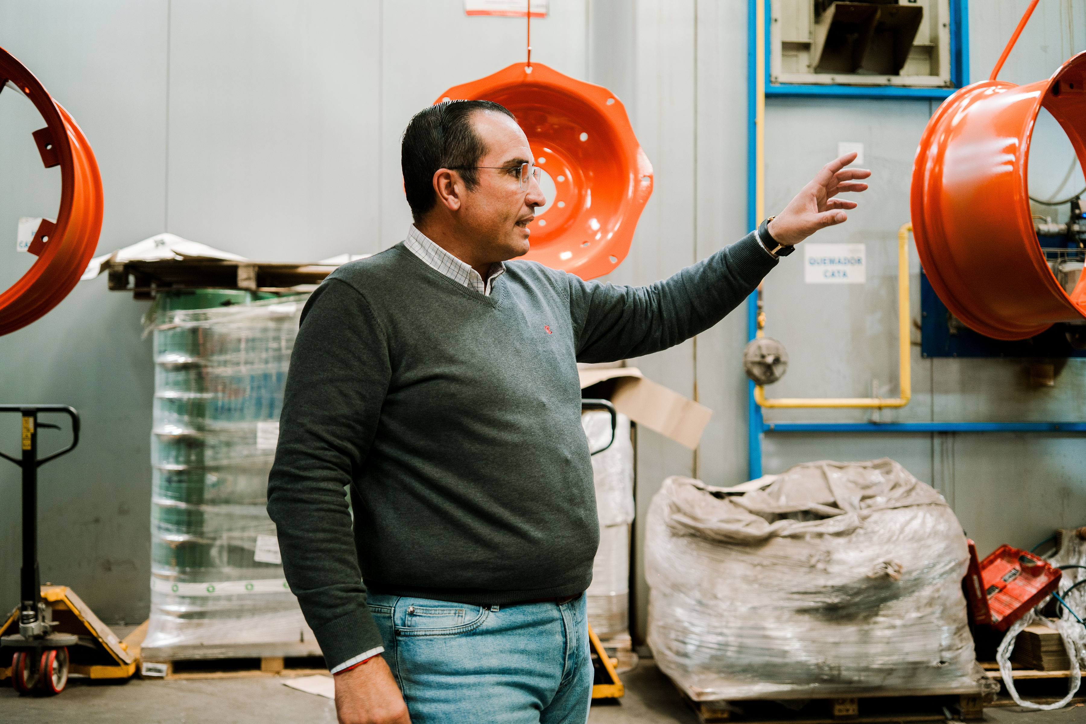 TEJWheels es el único fabricante especializado en ruedas para maquinaria agrícola de España. Su impacto en la zona es su mayor activo. Como esta pyme tan solo hay cuatro en Europa y apenas 15 en todo el mundo. Por entre sus plantas grandes y limpias, situadas en el polígono de la localidad, pasea Eduardo Jiménez Sr., un hombre de 80 años que lo sabe todo acerca de la empresa porque ha crecido en ella. Es hijo del fundador de la empresa, llamado también Eduardo Jiménez, y padre de los tres hermanos que dirigen la fábrica en la actualidad, el primero de los cuales se llama... Eduardo Jiménez (Jr).