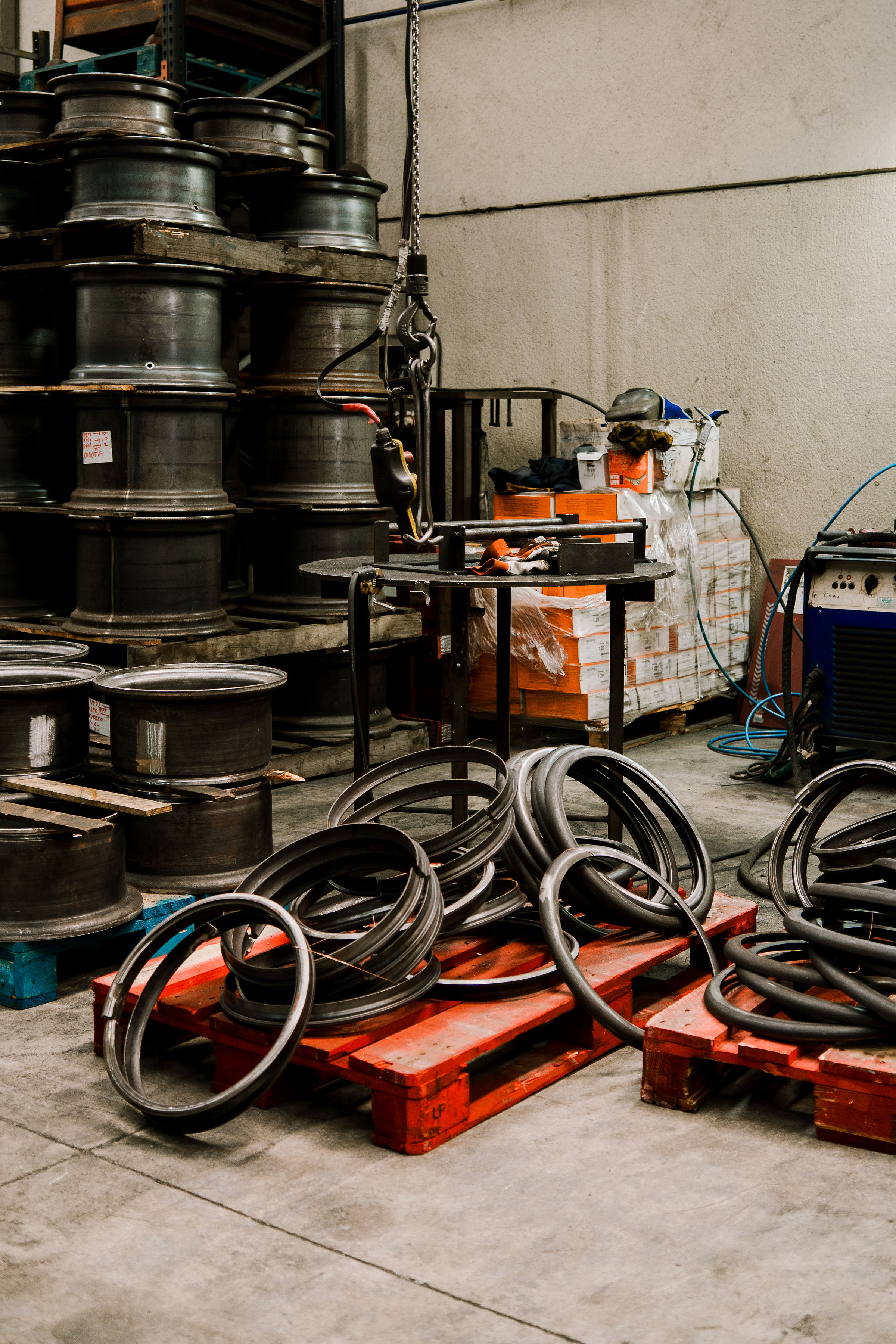 En puridad, hacen algo más que llantas. Empecemos por el principio: una rueda es en esencia una estructura metálica y un neumático. Esta pyme se encarga de fabricar esa parte metálica: el disco (el interior) y la llanta (el exterior). Sus materias primas son chapas de acero al carbono, pintura, mucha corriente eléctrica y mano de obra.