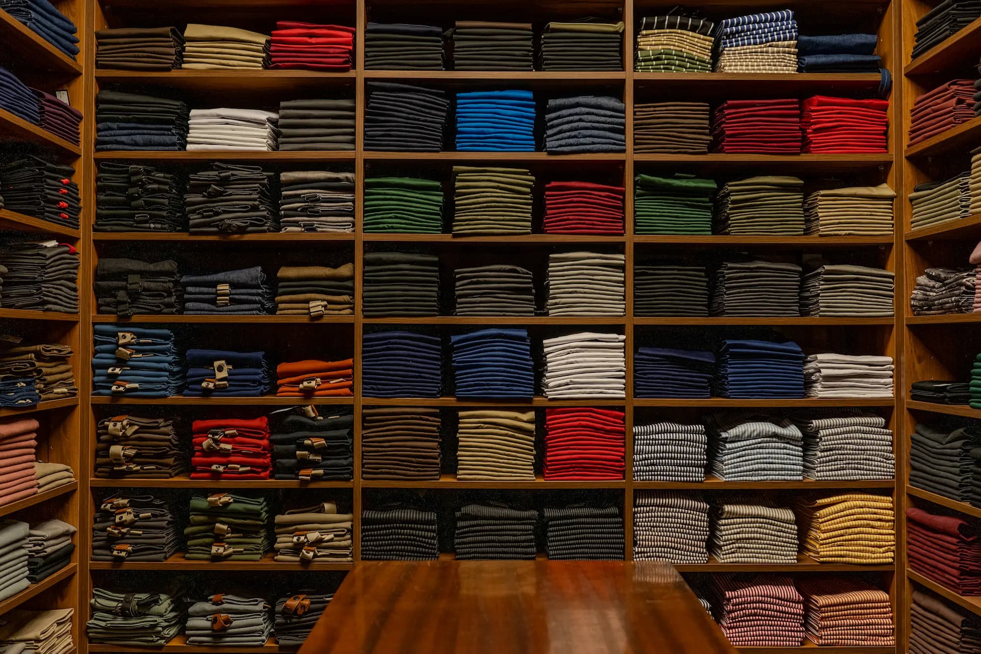 Más allá de la cálida sala principal del local, custodiada por los maniquís centenarios que vigilan desde el escaparate, se extiende una amplia trastienda con varios espacios. En ellos se apilan multitud de prendas de distintos colores y funciones, metódicamente ordenadas y clasificadas. Chaquetas de cocina, delantales, camisetas y polos para camareros, pantalones… Los hay de todo tipo, hoy el público está acostumbrado a la variedad. “Antes, por ejemplo, el delantal era blanco, de cintura hasta la rodilla, hasta media perna, el francés largo y el de peto. Ahora son de todos los colores y largos, con peto, más cerrados, más abiertos, con más o menos bolsillos, con apliques de piel… “.