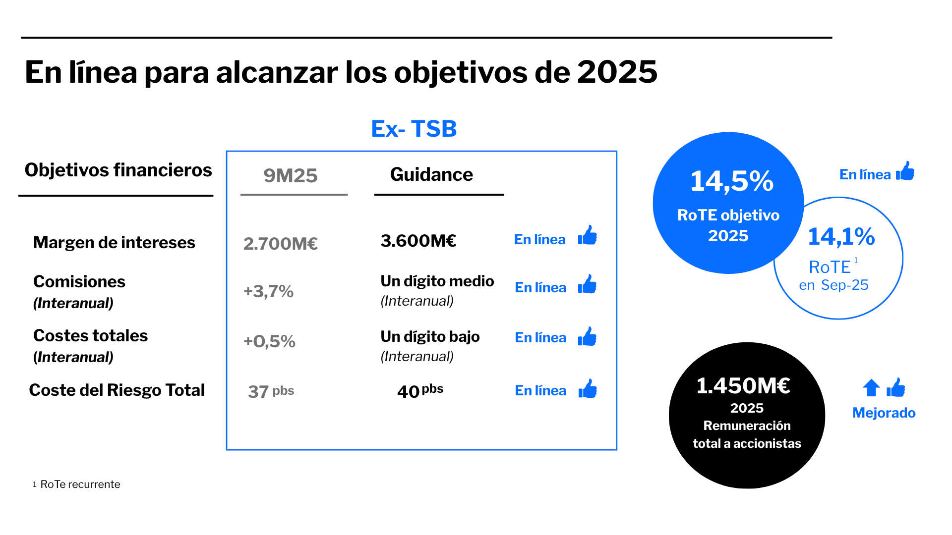 • El banco sitúa la rentabilidad RoTE en el 15%, equivalente a un 14,1% recurrente